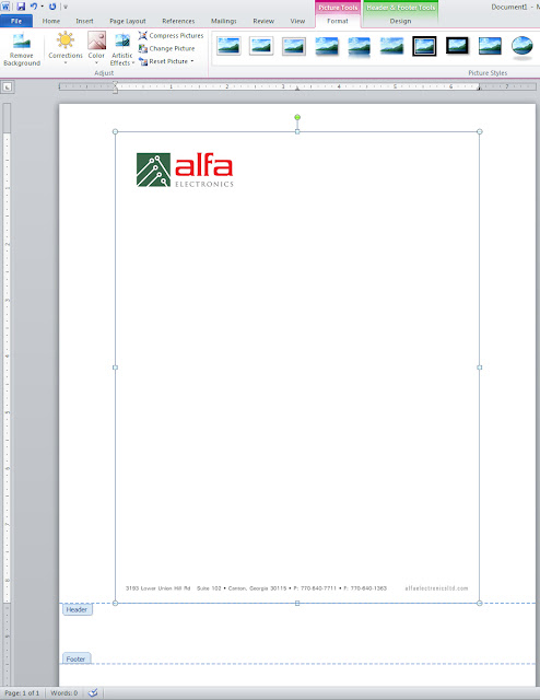 Set up your preferred fonts. You can now save the document because that’s all there is! To do the process with individual header/footer pieces, you still need to reset the size and do the text wrapping and positioning, you will just have one image file for the header section and one file for the footer section.